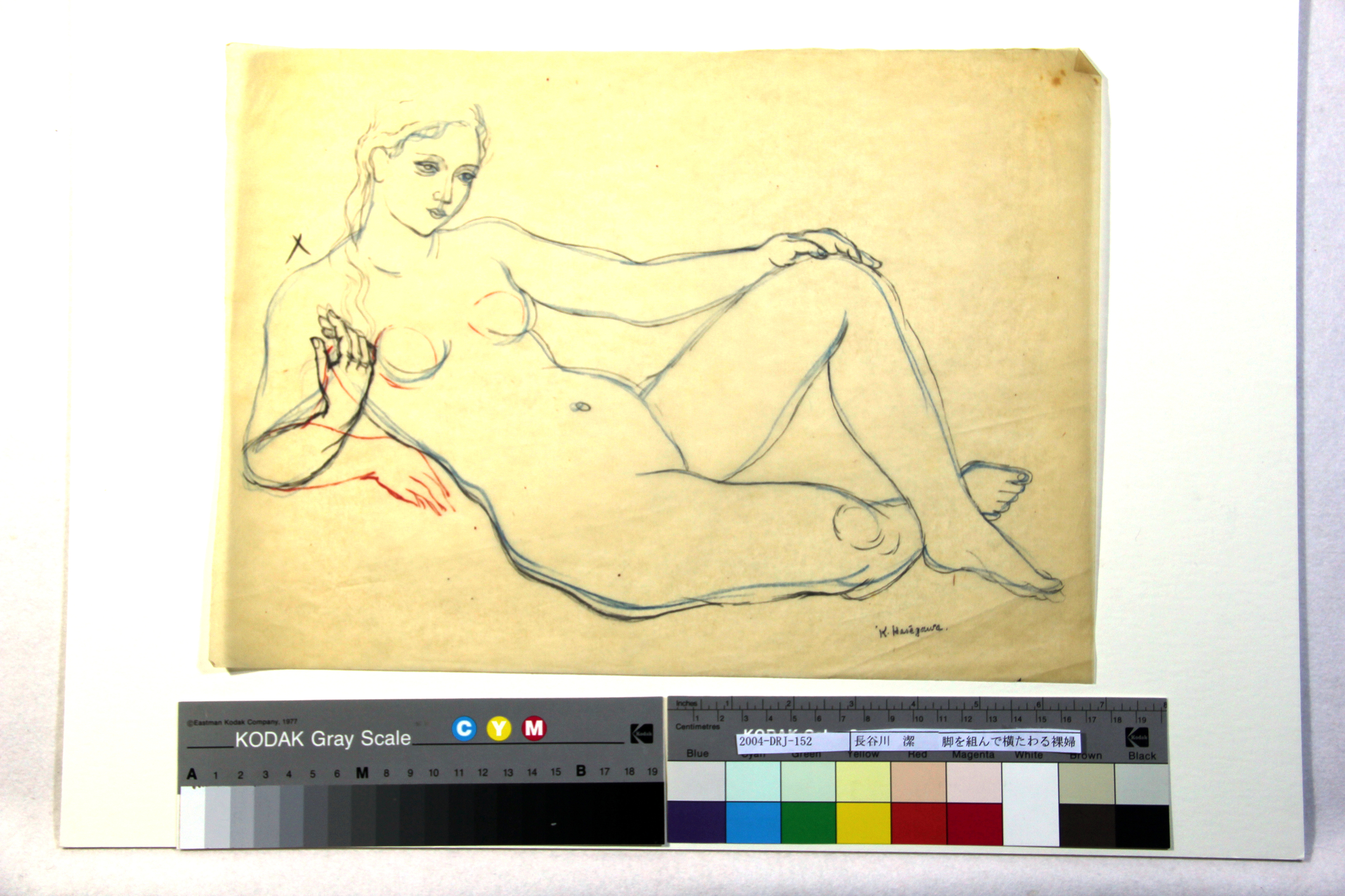 脚を組んで横たわる裸婦