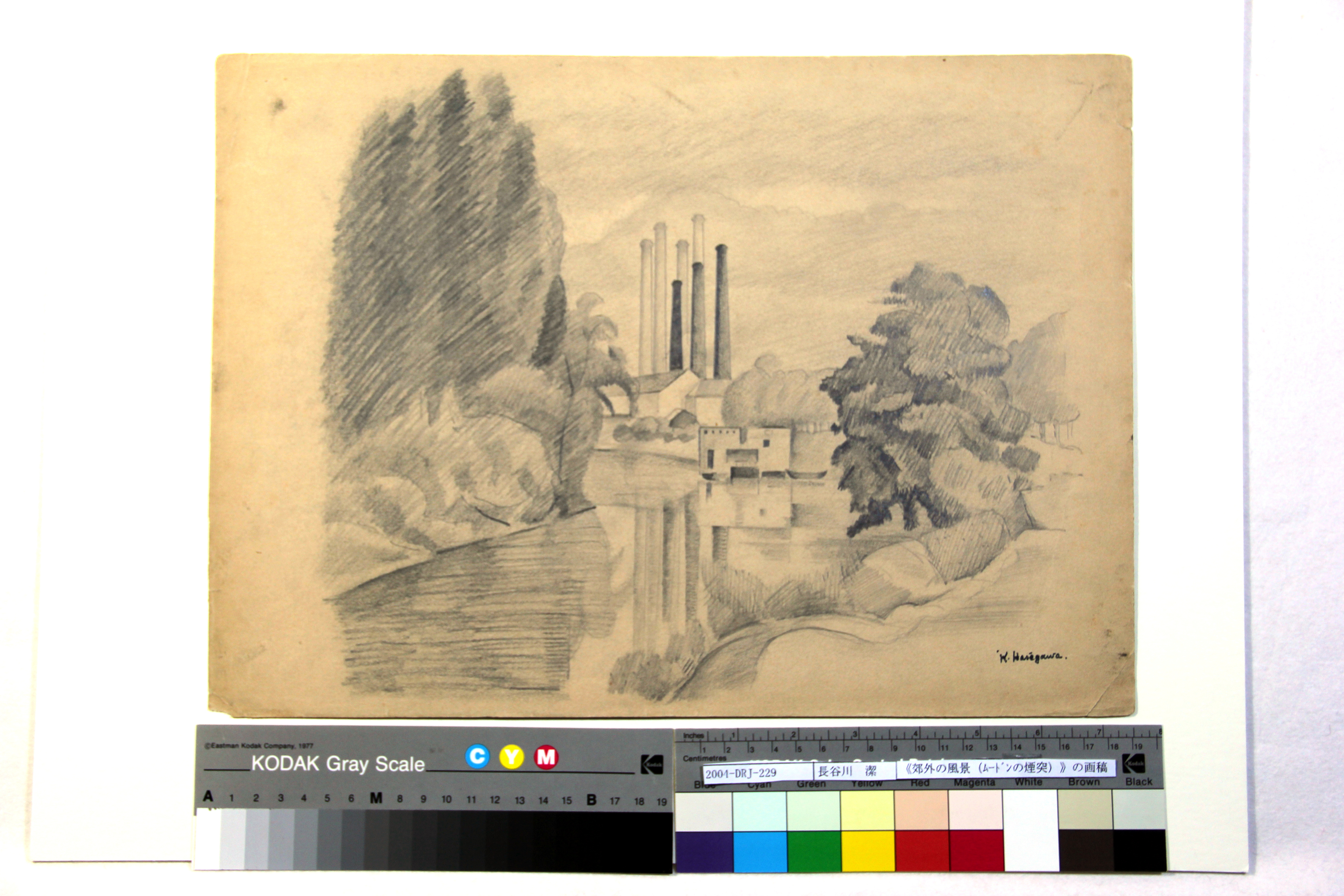 《郊外の風景(ムードンの煙突)》の画稿 画像 拡大する
