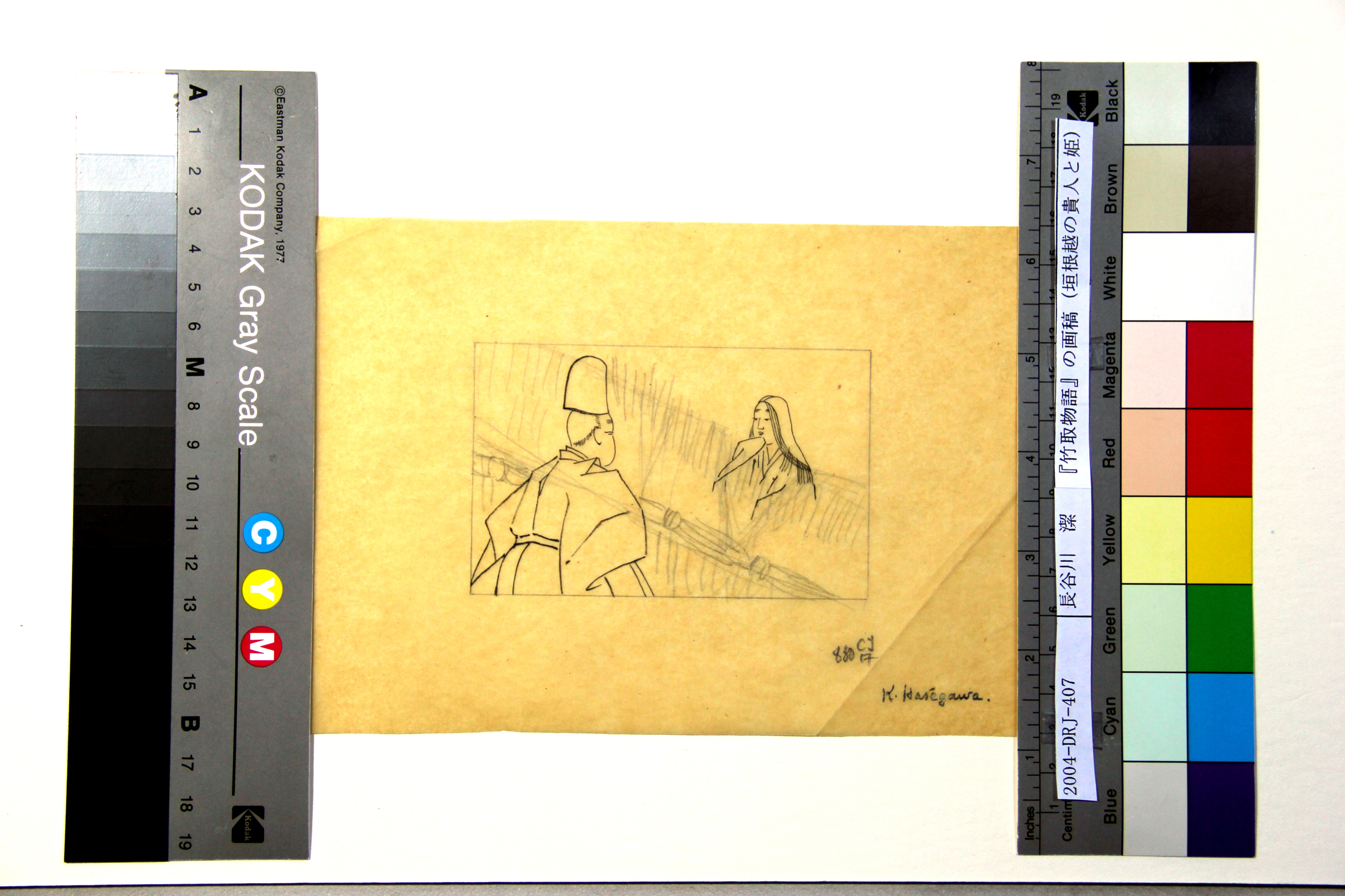 『竹取物語』の画稿(垣根越の貴人と姫)