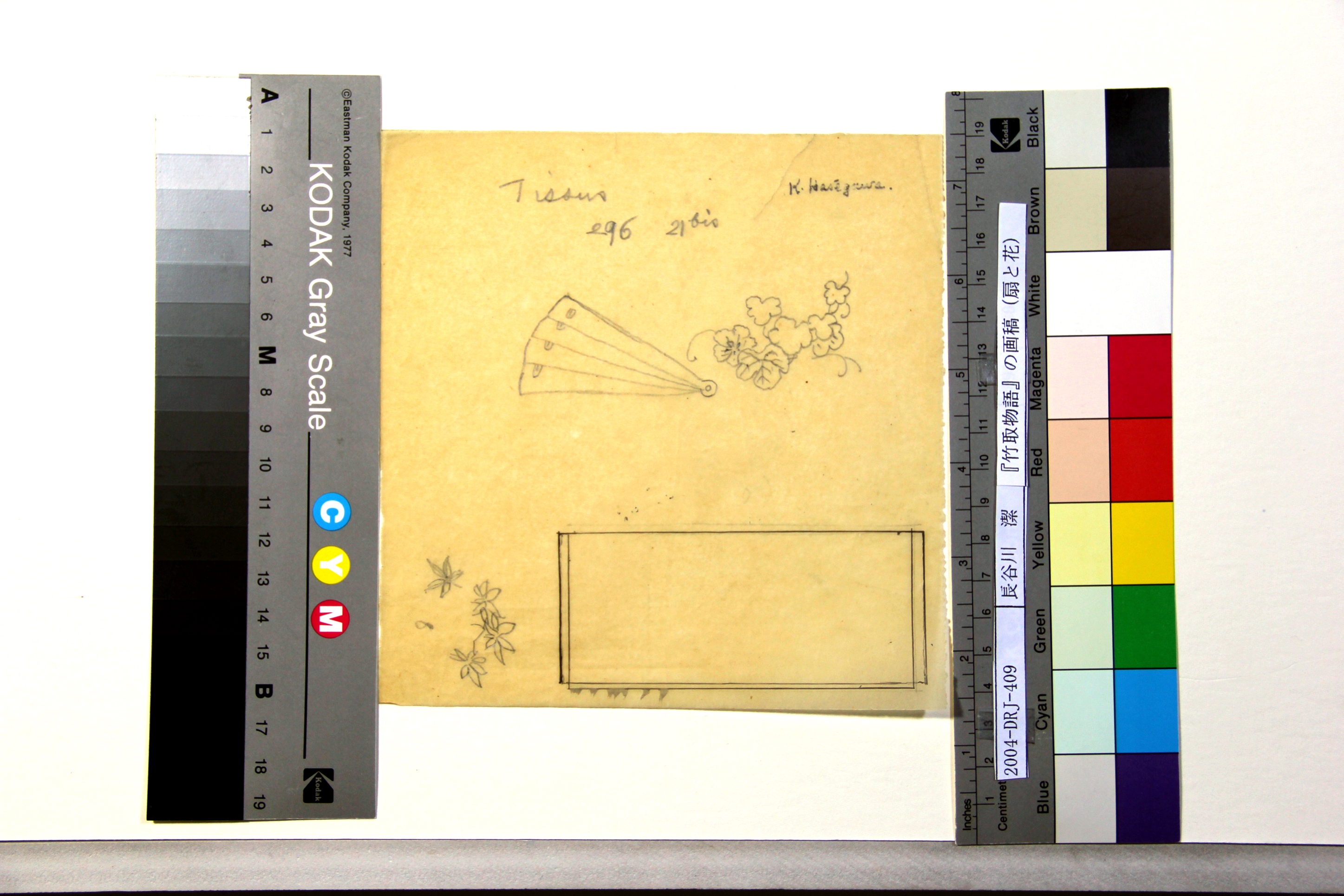 『竹取物語』の画稿(扇と花) 画像 拡大する