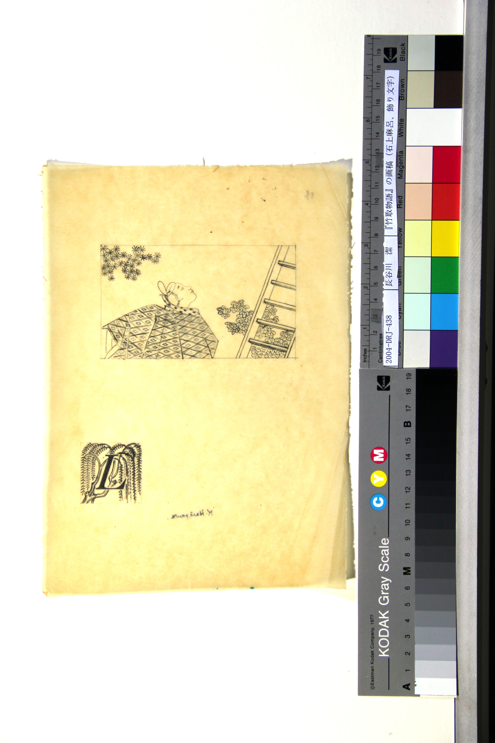 『竹取物語』の画稿(石上麻呂、飾り文字)