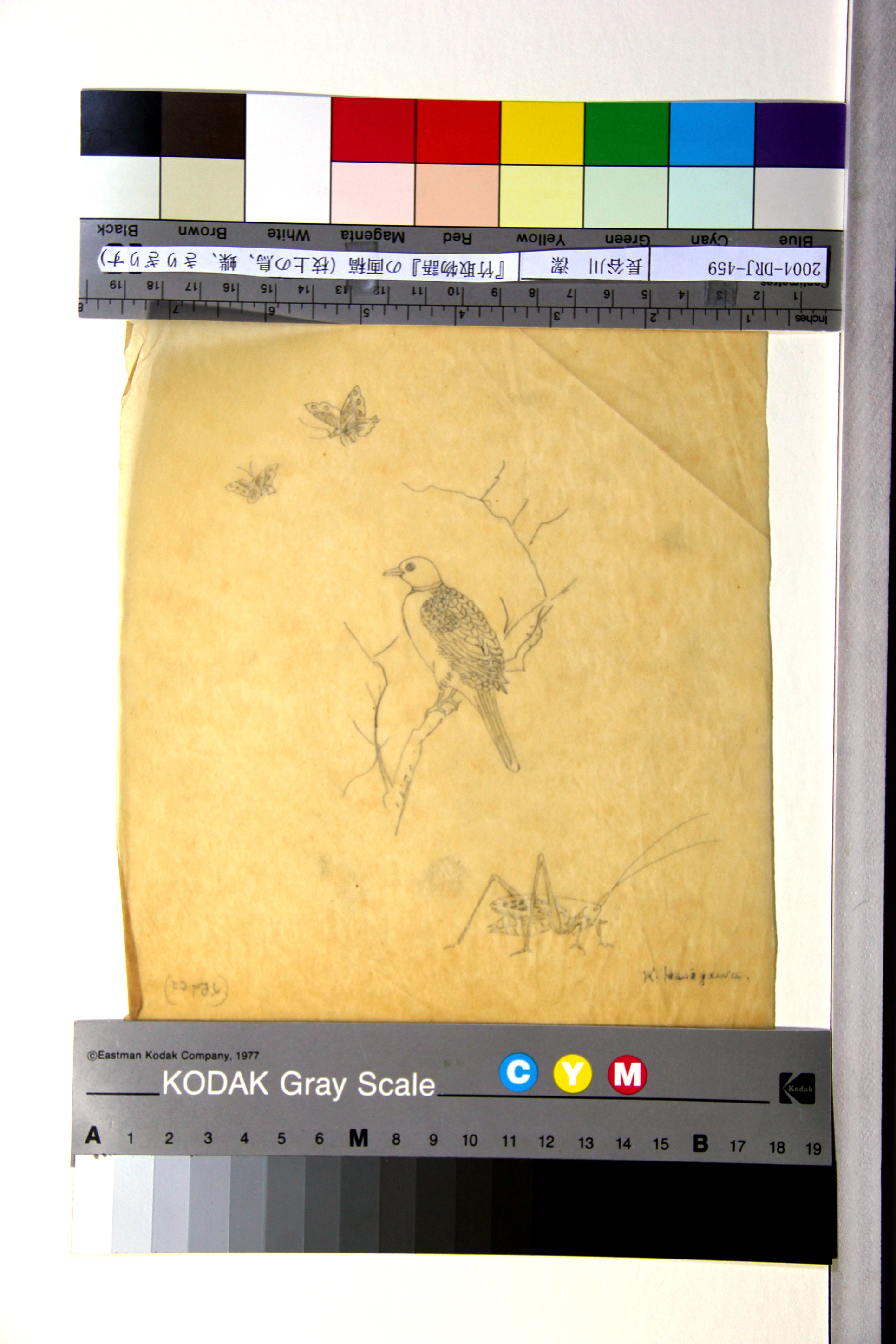 『竹取物語』の画稿(枝上の鳥、蝶、きりぎりす)