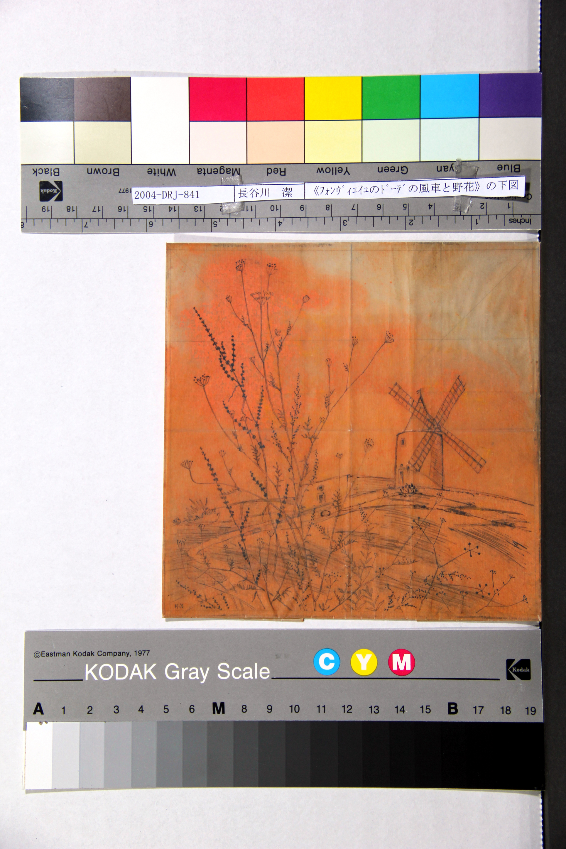 《フォンヴィエイユのドーデの風車と野花》の下図 画像 拡大する