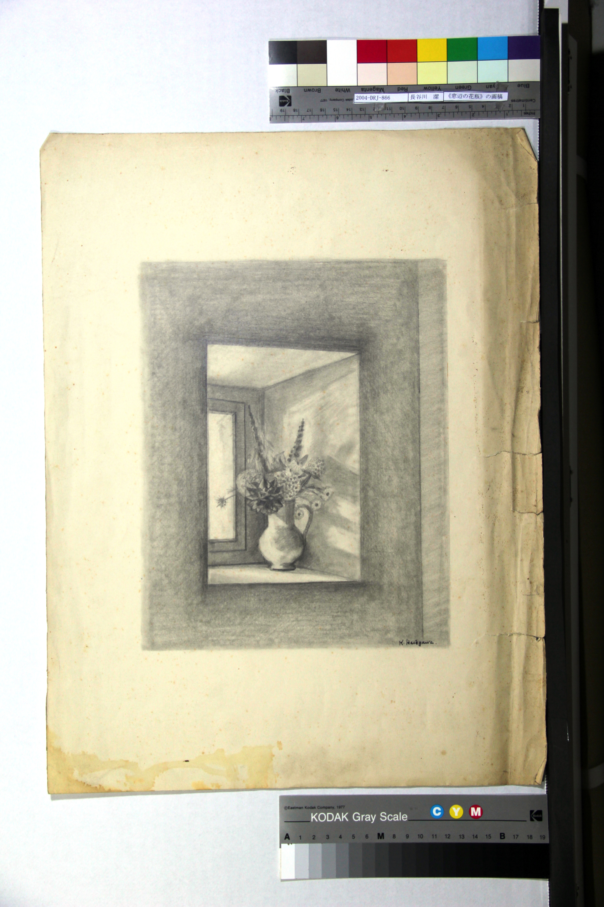 《窓辺の花瓶》の画稿 画像 拡大する