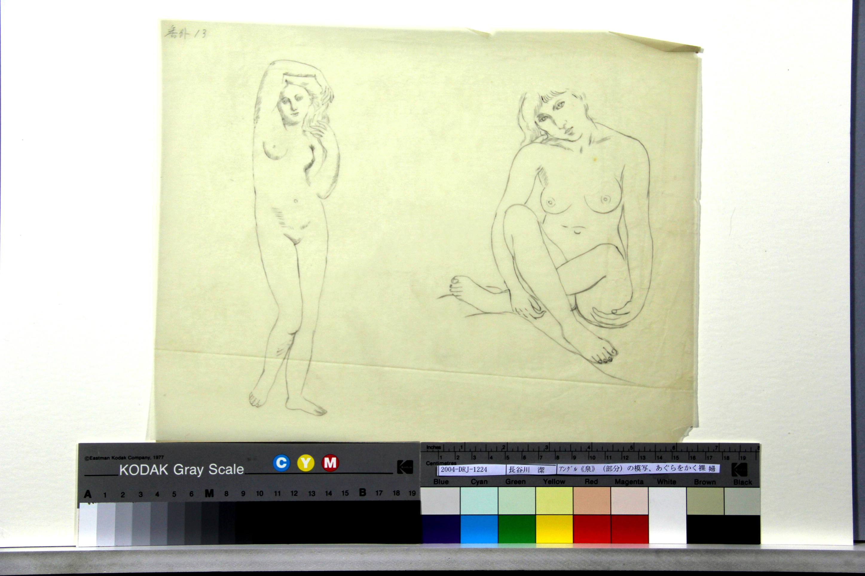 アングル《泉》(部分)の模写、あぐらをかく裸婦