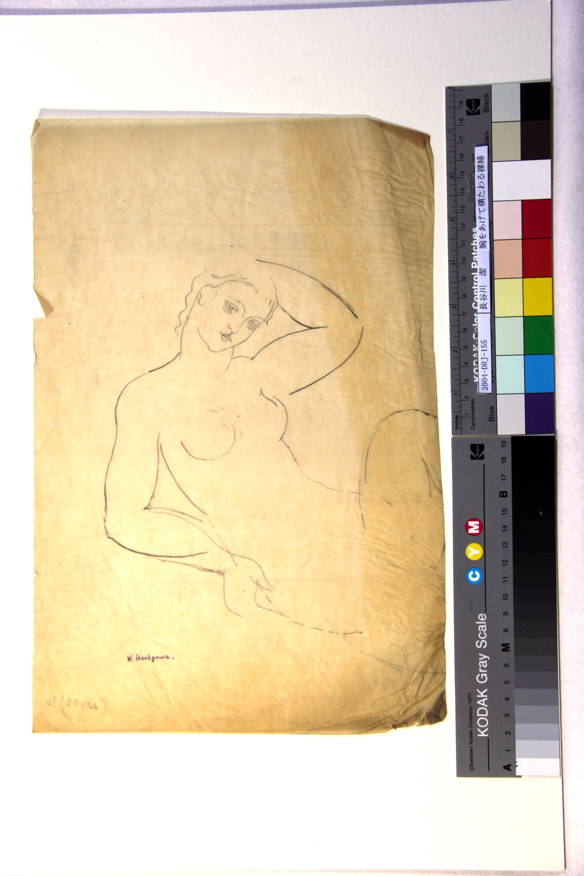 腕をあげて横たわる裸婦