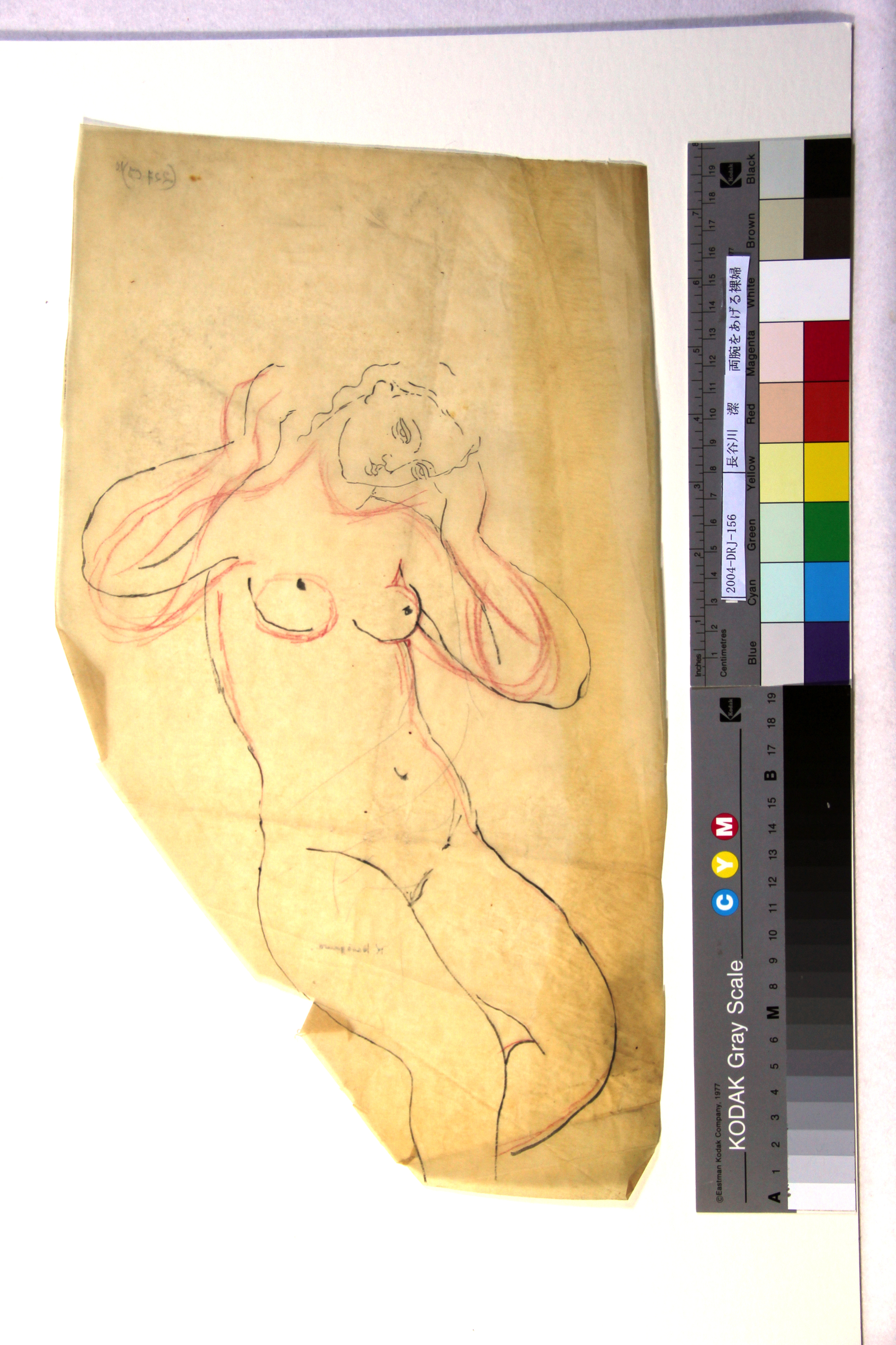 インク、赤鉛筆、トレーシングペーパー