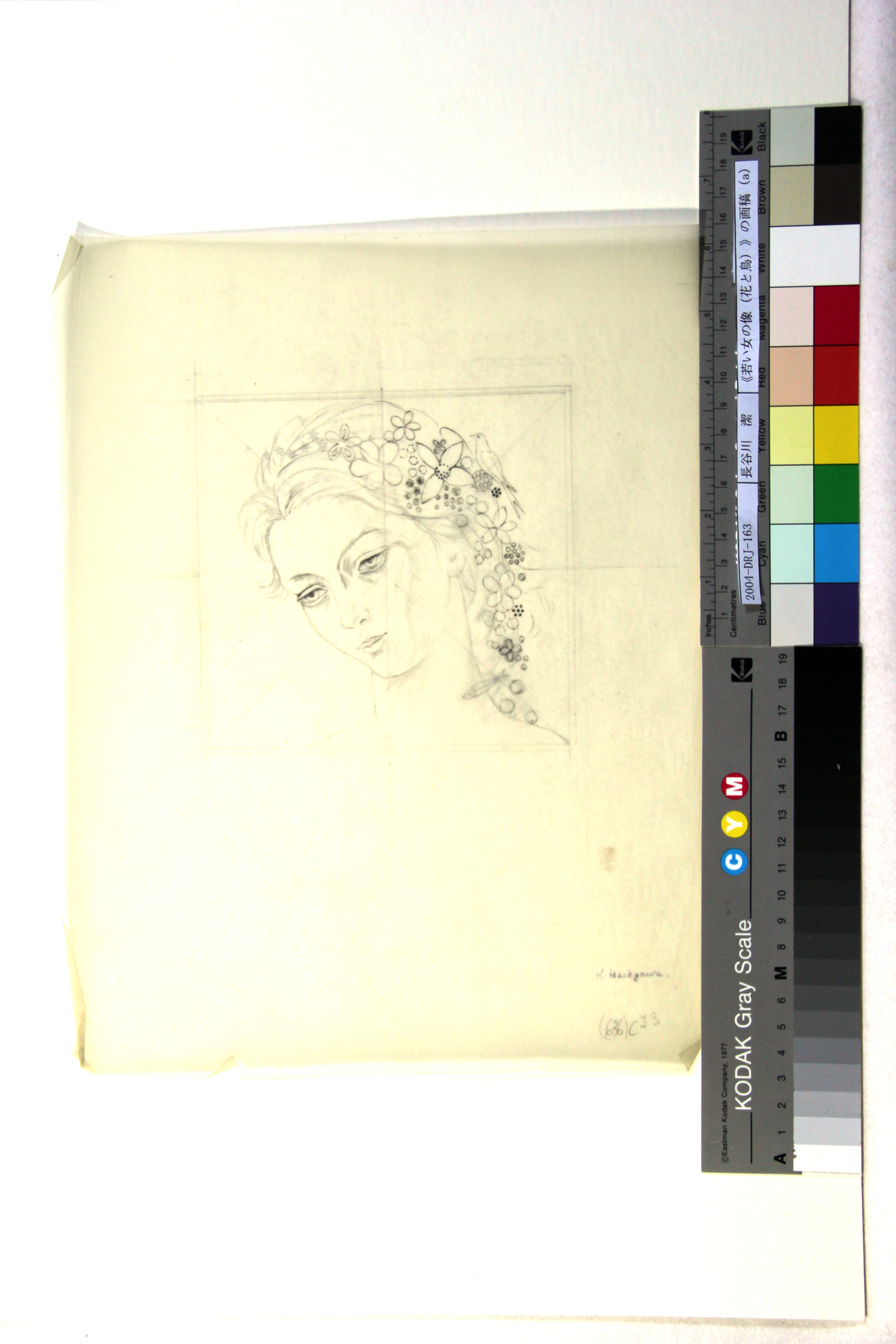 《若い女の像(花と鳥)》の画稿(a)