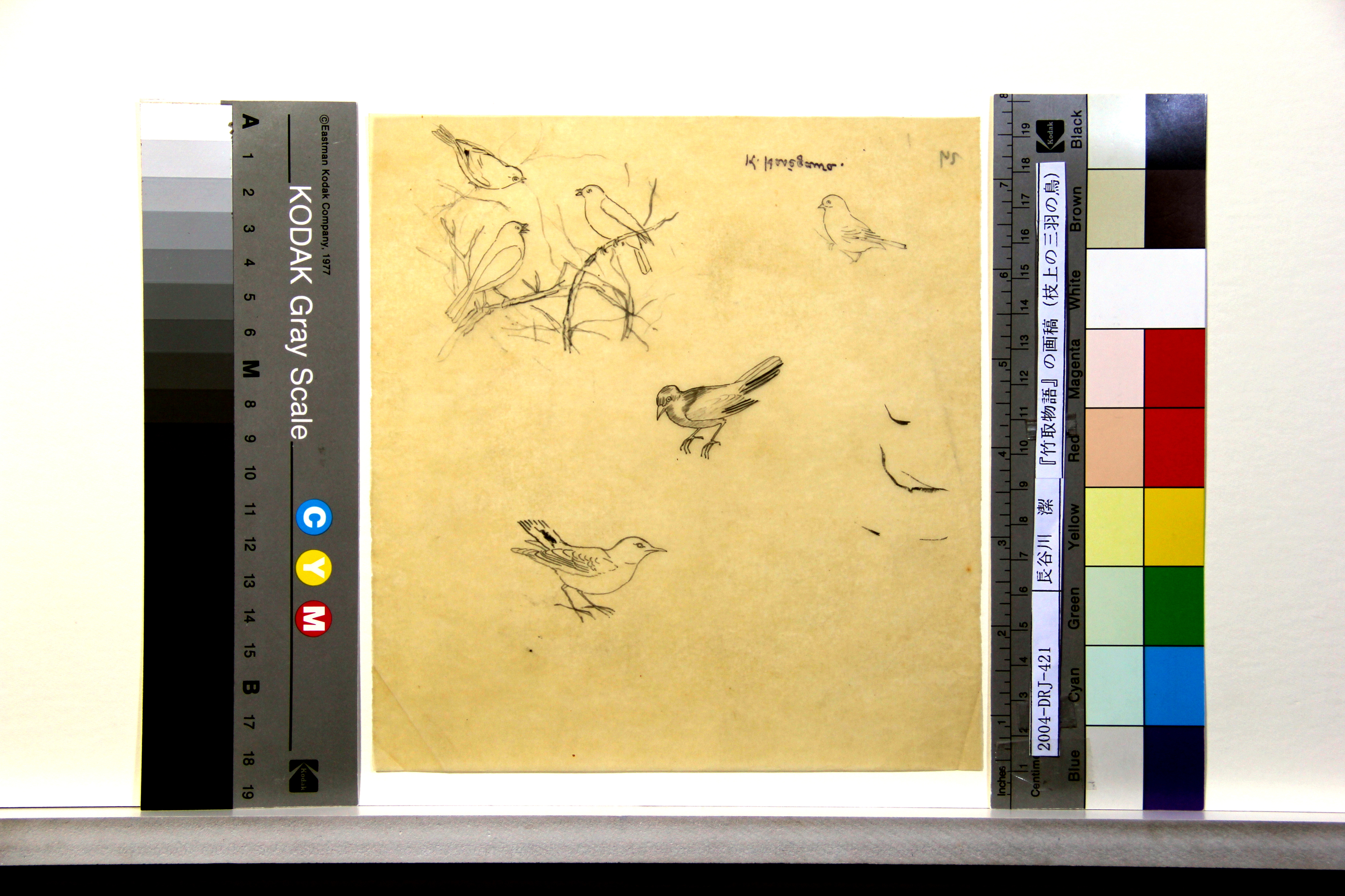 『竹取物語』の画稿(枝上の三羽の鳥)
