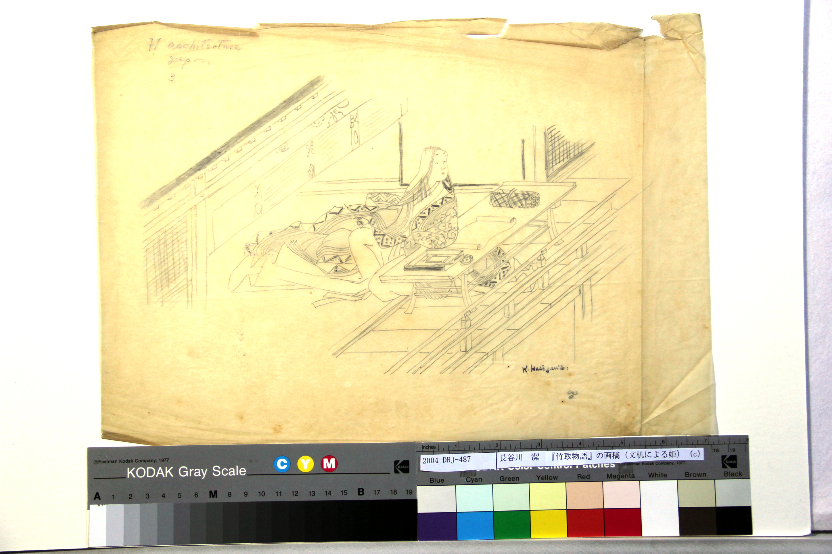 『竹取物語』の画稿(文机による姫)(c)