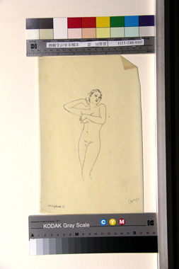 右腕をあげる裸婦