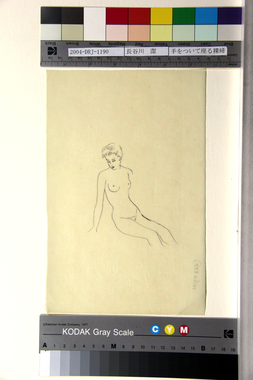 手をついて座る裸婦