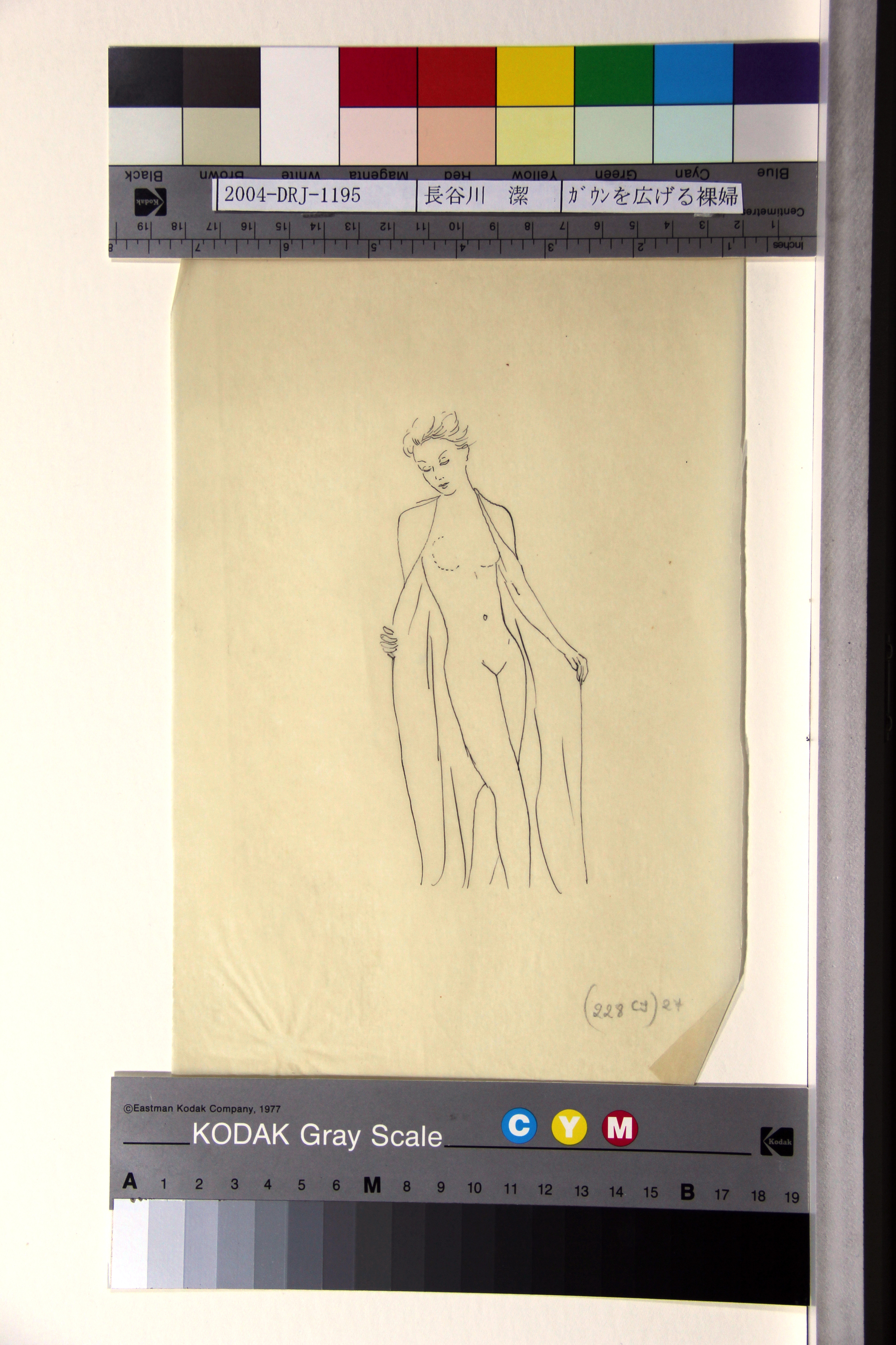 ガウンを広げる裸婦