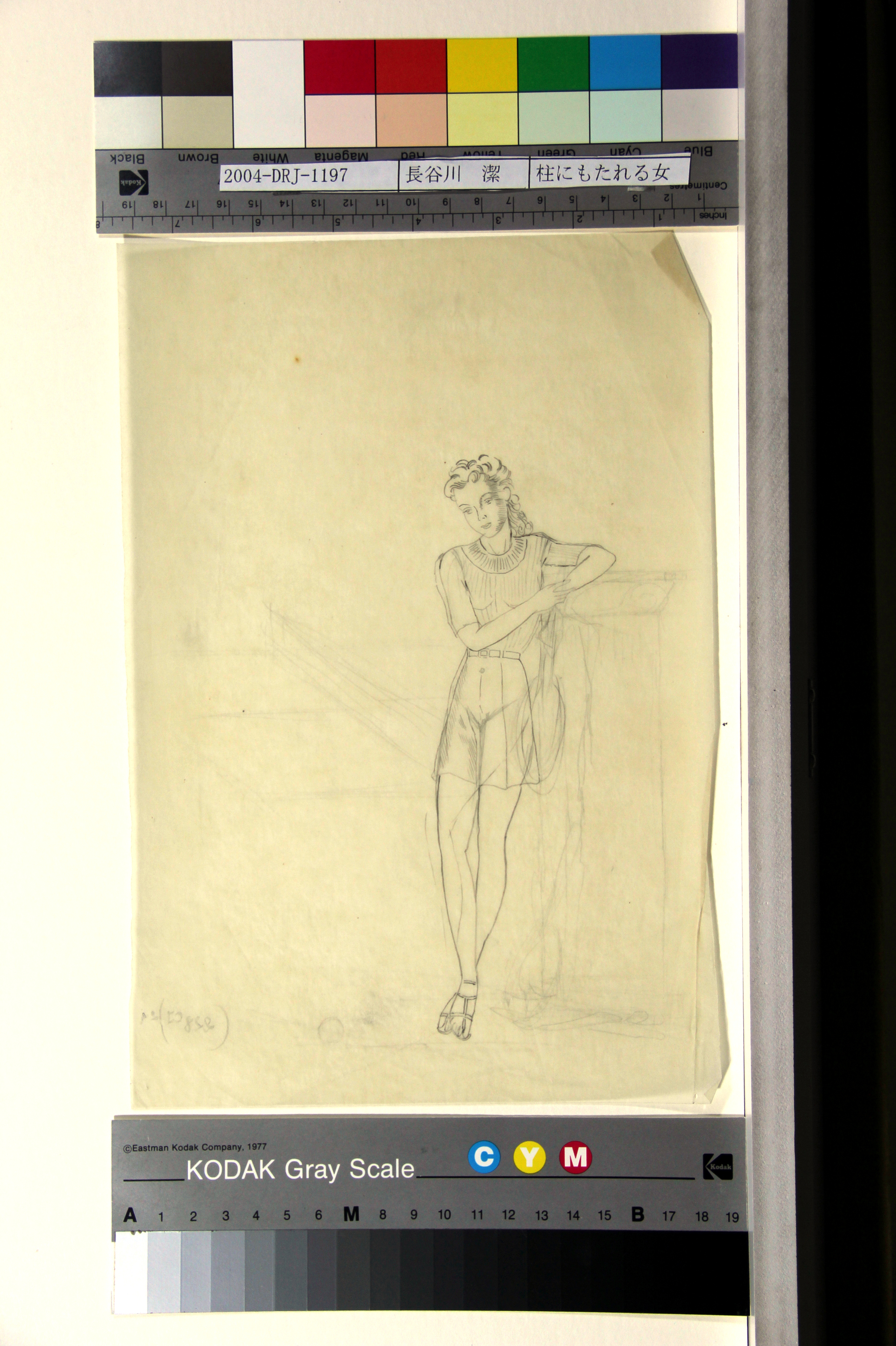 柱にもたれる女
